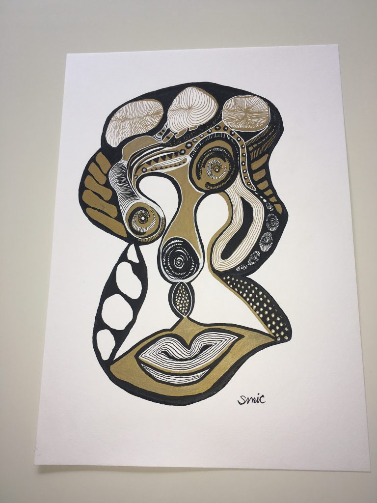 wuklfi IndlægsnavigationForrige indlæg: Tuufo – Tegning i abstrakt mønster i dæmpede farvetoner. Farver sort, hvid og guld.